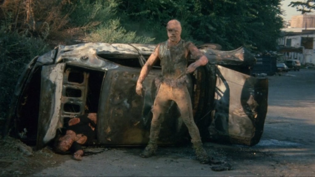 Toxie strangles Slug and throws him out of the car where he dies. He gets into the car and tells Bozo who he really is. Now, I agree that Toxie should be dealing with Bozo. He’s a dick and should get some righteous vengeance visited upon him. However, in the struggle in the car, Toxie does kind of cause some other collateral damage. But whatever, man! He rips that fucking steering wheel off the car and it flies off a cliff where it eventually explodes and kills Bozo.