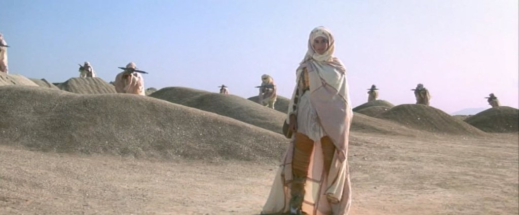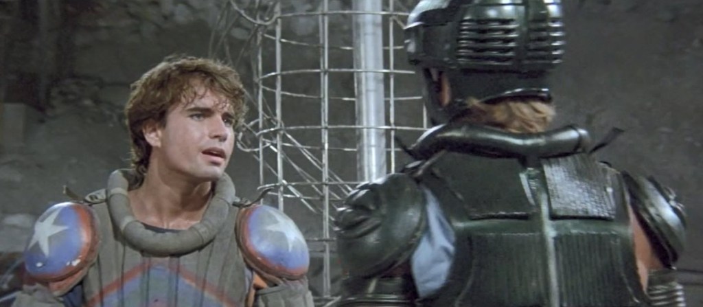 If I’m being just a little bit charitable, I can say Solarbabies has concepts that do work. It doesn’t especially look cheap or anything, so it does have some decent production value. Tiretown is interesting. The orphanage is interesting. The Chicani village is interesting. The problem is that it doesn’t stay in any one place for very long. It does come across as being a movie that is missing… something.