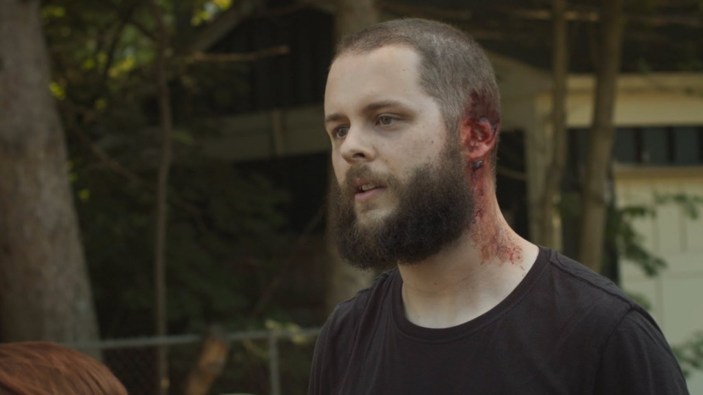 Later, as some of the group start looking for their own space, Christ and Danielle have a fight. He eventually goes to the video store to pick up a movie he wants to watch. On his way back, he is nearly attacked but fights it off thanks to Kate calling the zombie out to him from the porch. However, a second zombie was creeping around the corner, grabs Kate’s arm, and bites it. Hal chops her arm off above the wound with his axe, but she’s not in good shape. They can only do so much for her since they don’t really have any antibiotics or knowledge about how to care for the wound.