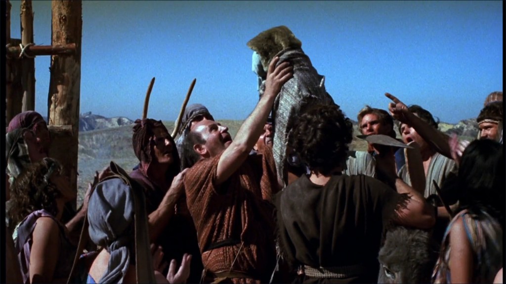 So Rip Torn tosses a kid into the fire and says that his god says he’s not satisfied yet. So he sends his goons into the crowd to pluck another kid out. Dar uses Sharak to save the kid from the flames just as his little feety toes start to get a little crisp and before Maax can push him the rest of the way in. The town bows believing they’ve witnessed an act of god, but Maax uses it to proclaim that their god wants their children.