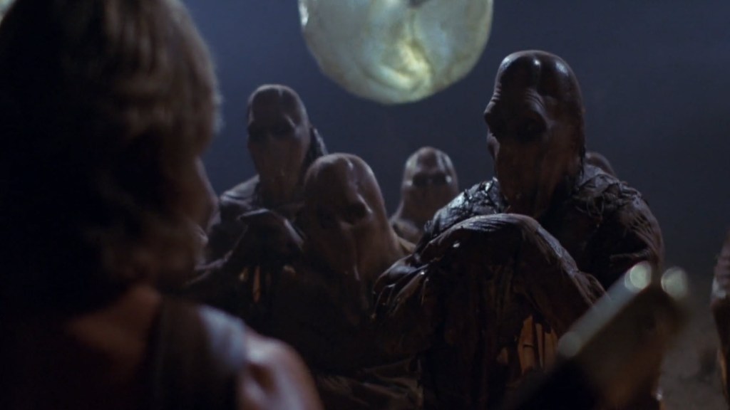 Coscarelli ran into other issues too. He began feuding with the film’s executive producers. This was mostly around the editing of the film and casting decisions. Two casting changes frustrated the director. First, the role of Maax was written for Klaus Kinski who, himself, was a bit of a star at the time in both Europe and the States. However, Kinski was dropped for Rip Torn when Kinski started a salary dispute. The big one that really frustrated Coscarelli was his decision to initially cast the young, up-and-coming Demi Moore as Kiri. The executives overrode his decision and instead casted their own choice, Tanya Roberts. Interestingly, off of this movie that earned a pretty quick cult following, Roberts would go on to star in another action/adventure fantasy, Sheena: Queen of the Jungle, and then it’s said that being cast as Kiri led to her eventual casting as the Bond girl Stacey Sutton in A View to a Kill. So, while I don’t think Moore would have benefitted that much from being cast as she was about to have her own arc to stardom very shortly after this movie, Roberts probably benefitted more from being cast as Kiri than her time on Charlie’s Angels.