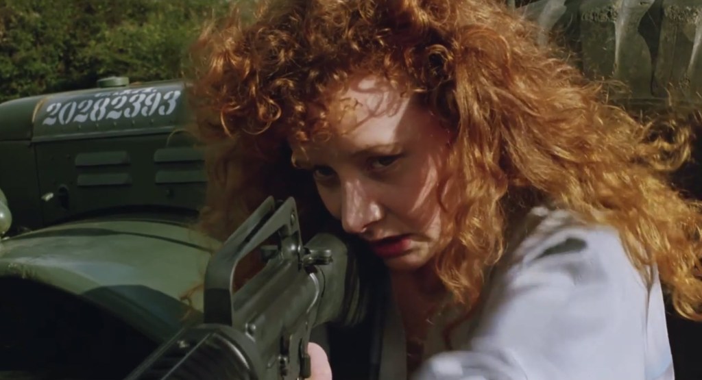 Bruno Lawrence is amazing in this. He has all the range. A little later this summer, we’ll see Bruno Lawrence on B-Movie Enema: The Series when I watch the fantastic Warlords of the 21st Century (aka Battletruck). He’s good in that too. Pete Smith as Api is pretty good. He comes in during the final act so he has less to carry than Lawrence, but he’s got a good look to him. He would go on to be in a lot of great films like The Piano and The Lord of the Rings films. Sadly Smith passed away a couple years ago. Alison Routledge plays the lovely Joanne. Interestingly, Routledge didn’t have that big of a career. She ultimately retired from acting in 2005.