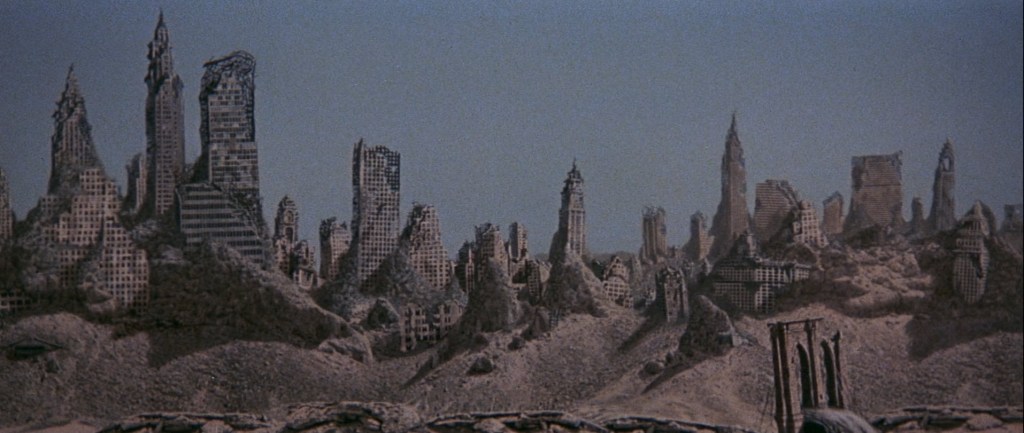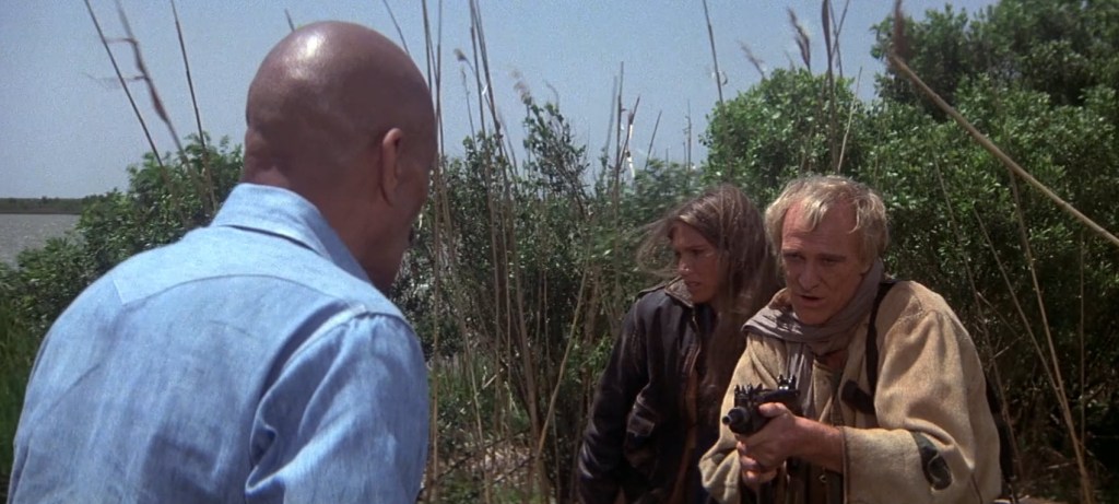 This is an interesting movie. Is it particularly good? Eh… That’s a tough one to answer. On a technical level, I think it is well-shot and well-produced. This was Saul David’s final film he produced. David produced Logan’s Run a few years before this. There is a bit of similarities between that film and this one. In Logan’s Run, Logan and Jessica escape and are ultimately pursued as runners. It follows them through a world of recognizable things but things they don’t recognize themselves. Richard Harris is playing a very similar role. He’s traveling on foot across a lot of things we have plenty of reference and understanding of, but he doesn’t. Or, I should say, people in this world wouldn’t have the same use for those things as they once did (i.e. the space museum).