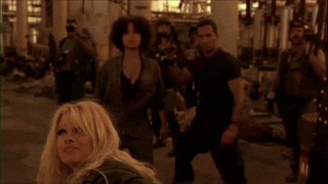 Well, yeah, but what I’m getting at is this could be so much more artistic than it is. It’s water and hair whipping around and slow motion and a guy yelling at her to take her clothes off and “Word Up” blaring until your ears bleed. It’s sensory overload. Imagine walking into a General Cinema or Loew’s Theater and sitting down with your popcorn, drink, and candy and you are literally blasted in the face with this opening sequence. It’s too much. That doesn’t mean you throw this idea of having Pam Anderson do something you want Pam Anderson to do in your film away. Instead, how about building to this? It’s like we’re blowing our load way too early. I want to take a nap… not watch the rest of his movie.