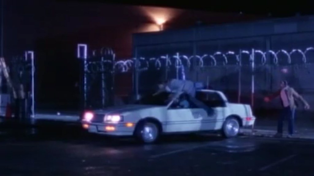 The movie kicks off in a dark city alley late at night. A guy is desperately trying to run away from a trio of pursuers. The guy on the run finds an old man getting into a car in the middle of a whole parking lot of nuthin’ and pushes the old man out of the way to get into the car and take off with it. Just as he does, one of the pursuers tries jumping ON TOP of the car while the other guys try to catch up. It looks like the three guys chasing after the dude in the car are also accompanied by a car with more guys in it.