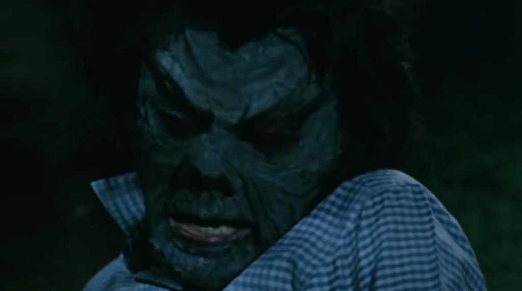 The old man and Rogers plan to give themselves up realizing there is no place to run, one of the police guys shoots the old man dead. This triggers the transformation into the monster man. Before he dies, the old man’s final words were to Langdon to “Pray for me…” Praying for the old man as the monster man allows for the other detective on the case, Campos, to shoot Langdon dead revealing he has now escaped Satan’s control.