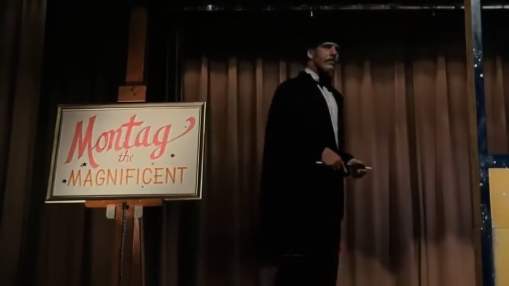Montag talks about how what they saw was merely a trick that harmed no one at all. That’s when Jack lays the heavy shit on everyone that he read the paper just before going to pick Sherry up for tonight’s performance. The girl from last night’s show was found dead in a restaurant where she was sawed in half. Maybe the show isn’t hurting anyone, Jack thinks, but certainly, someone might be taking notes from Montag’s grotesque ideas and performing them for real after following the volunteers after his shows conclude. Sherry sticks up for Montag saying that he could have been watching a movie at home and decided to go kill someone. Montag says he would feel quite guilty if what Jack said is true. Jack relents and says she’s right… It’s not like Montag’s show can really convince anyone to do anything like that.