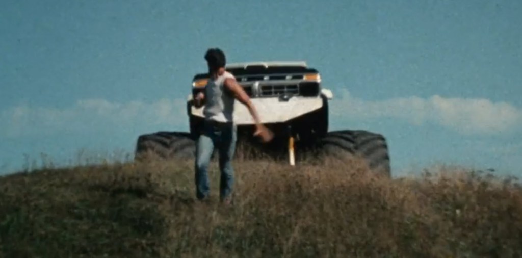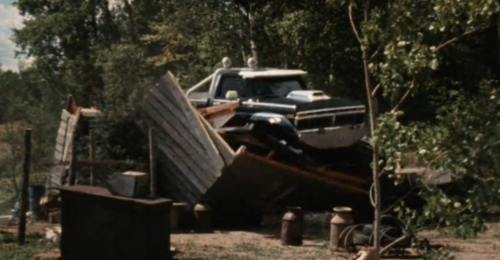 But, we’ll reserve more talk about Rebane and his films for when that time comes. For now, the topic is Twister’s Revenge! This is a movie that is heavily leaning on the popularity of monster trucks of the 80s. We’ll see exactly how far it goes to try to lean into things that should have made this movie a massive hit with younger people as we get into this movie in a moment. I will say one more thing about Bill Rebane as it pertains to this movie in particular. This is a movie that was made for less than $100,000. It’s shot in Gleason, Wisconsin at the site of Rebane’s “Shooting Ranch” where he made lots of movies and where others would come to shoot films too. There’s a look and feel to the good-ol’ fashioned hillbilly sort of atmosphere of this movie that I’m positive would have shown up on cable when I was a kid and I probably watched some of it. It’s got monster trucks. The bad guys are bumbling idiots. People are doing things that I could see very easily being done here in Indiana. It’s kind of a warm feeling I get seeing something like that is very recognizable and present from my past and roots as a Midwesterner.
