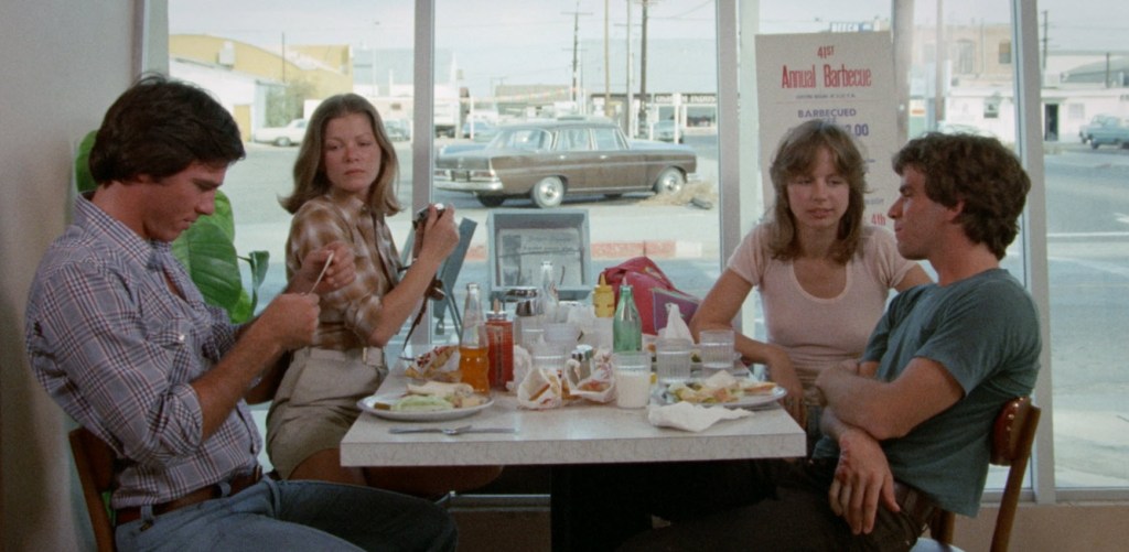 Later, while they are on the road, Pat suggests they drive the camper to the ocean and have a beach party. Kathy initially says she’s tired and just wants to go home, but this is one idea of Pat’s that Jesse does like, so they go and enjoy the sunset. I will give this movie one thing… it looks very pretty and is well-shot. There are things about this movie that make you think about days gone by and times spent with friends. This is especially done in how this movie looks. It looks like a memory of a good time or the reminiscing of one last good time you had with a friend.