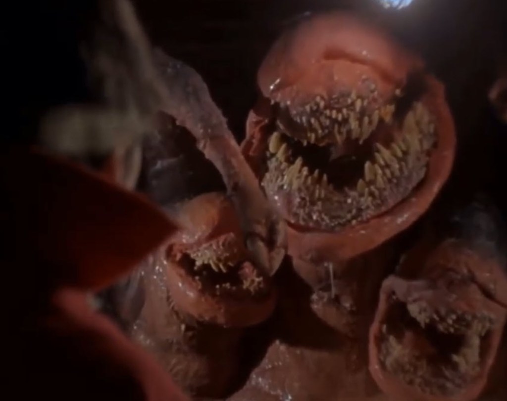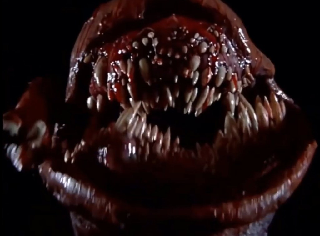 What she finds instead is the toothy mouth of the deadly spawn EATING his hand!