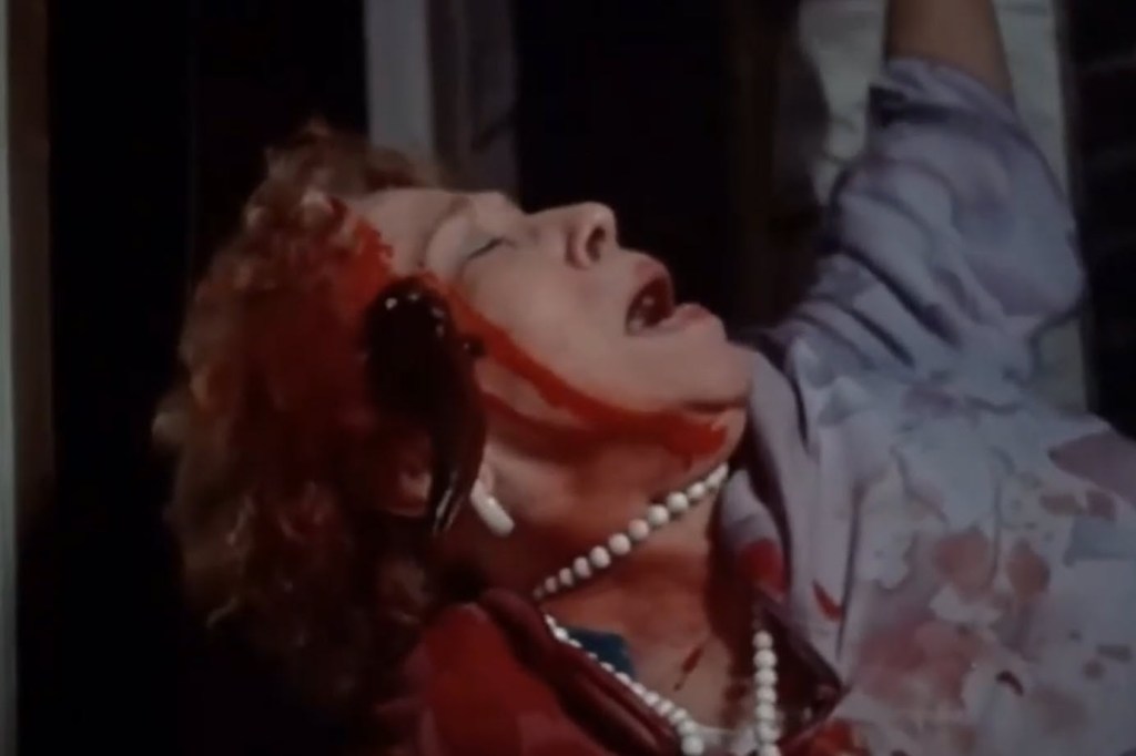 Everyone at Bunny’s lunch party is getting bitten and attacked by slug monsters. Millie turns out to be something of these creatures’ Rambo because she starts ripping them off the old ladies and starts stabbing the shit out of them with a fireplace poker. She leads the charge for the old ladies to escape Bunny’s house and pile into a station wagon for safety.