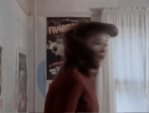Meanwhile, Kathy arrives for the study date. She comes in, goes upstairs, and knocks on the door of the bedroom that the other three are hiding in. When Pete lets her inside the room, the momma monster attacks but only gets her coat. I do like that Kathy has the best line in the whole movie. After the monster attack, she gets pulled into the room unharmed and she just shouts, “What the fuck was that?!?” Pete then worries about Charles. He wants to know if Kathy heard him when she came in. Frankie’s like, “Yeah, I just want to get out of here.”