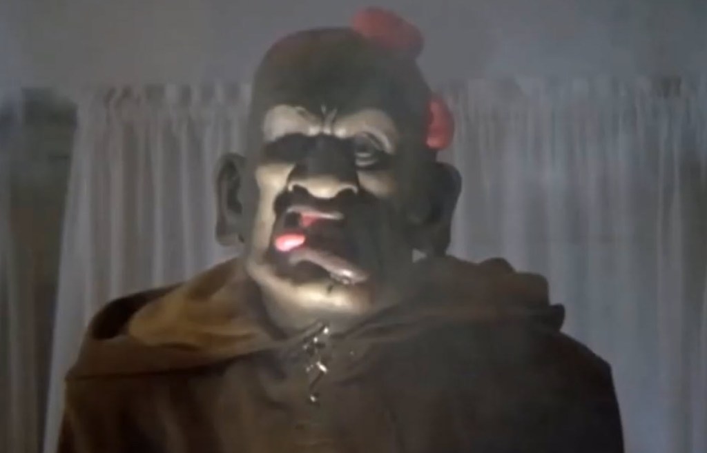 But Charles has a plan! I’m telling you, this kid’s fucking awesome. Earlier, when he tried to scare Aunt Millie with one of his costumes, he used some flash powder to create a burst of smoke. Now he gets the idea to do this again but sacrifice one of his monster masks and foam heads that it sits on to create an explosive. Charles is nearly eaten by the monster as he tries to lure it over to him, but when the monster chomps down on the prop head, it explodes when Charles plugs the wire he used as a charge into the outlet.