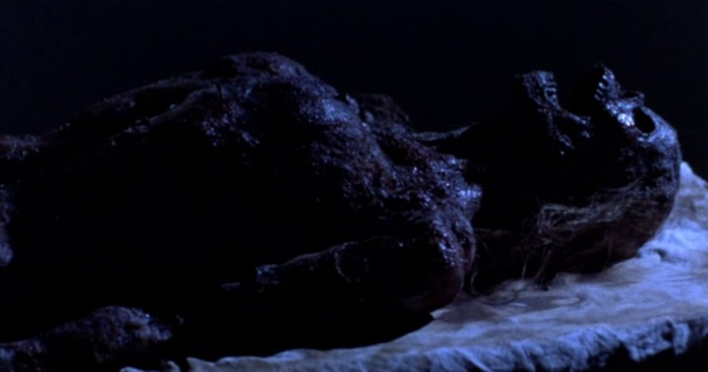 Summerfield, Casserly, and a third scientist find Marshall’s body. She appears to be charred, but the third scientist whose name I do not care to learn says that this looks like absolute dehydration (whatever that actually means) and that it should take years for a body to do that. Some sort of combustion occurred but there is no sign of a fire. They do notice that the grate to the vent is busted up.