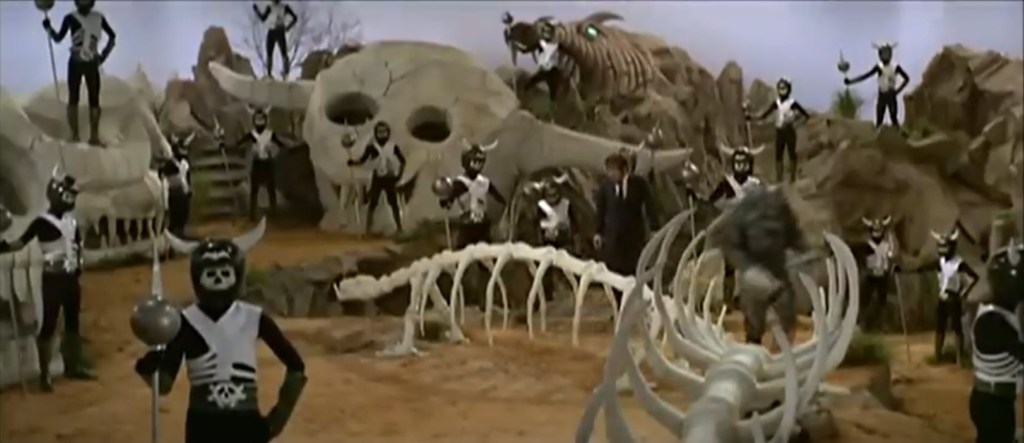 The greatest thing about this is that it’s a full ass movie. It’s not some cheap, 75-minute movie. Oh no. It’s nearly a full 90 minutes. One of the things it does is front-load the movie with a bunch of monster stuff. Inframan doesn’t make his first appearance until just under 30 minutes in. We don’t see him a second time to do more heroic shit until another 12 or so minutes later. All that leads to a frenzied final 20 minutes and a final non-stop battle in Demon Mommy’s lair that lasts a full 10 minutes. And that final battle is insane. Like I said, it’s all explosions and flips and lasers and goons and Inframan fucking shit up. It’s glorious and really saves some energy earlier on to really give those final 20 minutes, the 10 outside the lair and the 10 inside the lair all the energy left in the tank of the movie. It’s truly a masterpiece.