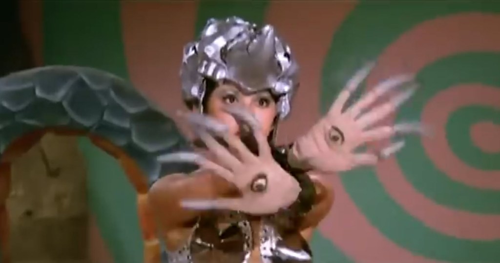Demon Mommy is none too pleased about Inframan constantly killing her monsters. So, she takes a look at those schematics that her evil spy stole. As her sexy sidekick flips through the pictures of the blueprints, she suddenly sees something that is promising… Yes… She can attack Inframan’s hands, and that will be what will give her the upper hand. See what I did there? His hands are his weakness, I guess. And attacking them would give her the upper hand. Yeah?