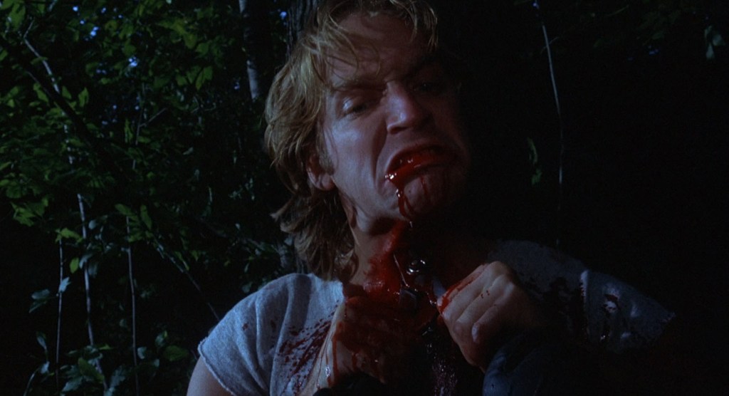 Frankly, this is one of the greatest jump scare surprises in any horror movie of the 80s. It may be the greatest jump scare in slasher history. Not only does it totally surprise you that Cropsy is hiding there, but it also kills characters you wouldn’t expect to die. I mean, sure, Eddy… He’s got it coming. However, we also lose a younger girl who didn’t exactly have a ton of scenes or lines, but she was heavily featured whenever the girls were. We lose a girl who was sweet on Alexander’s Dave. The biggest surprise, though? Woodstock and Fish getting killed too. They were major characters. That’s pretty ballsy even for 1981 in the early days of slasher horror.