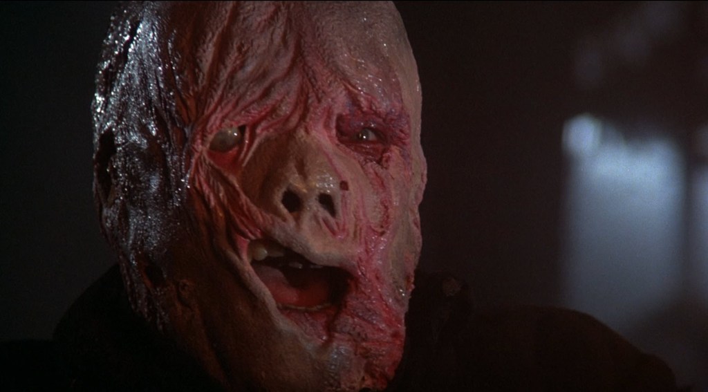 Cropsy lights a flamethrower and approaches Todd while he remembers that night he and the other kids were part of the whole prank that burned Cropsy up but good and set all this in motion. As Todd quietly tries to search the shack for Alfred, we get a second really good jump scare and a really good look at Cropsy’s face. This is why you go get Tom Savini for your movie, kids.