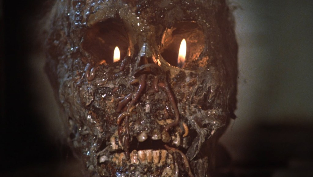 Everything starts off as intended. The guy who sneaks in to leave the skull and light the candles gets in, but gets a brief start when Cropsy sits up while still asleep. He’s able to leave behind the head and get outside to join the others as they play their part of rapping on the window to wake the caretaker. The skull even does its job of scaring the shit out of Cropsy.