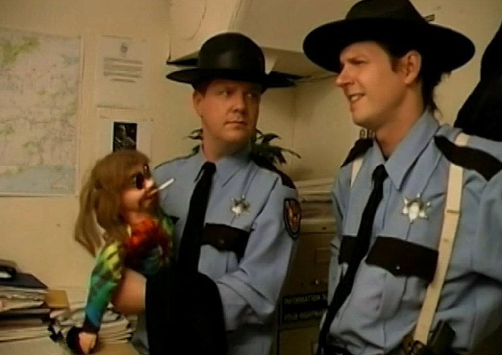 The funniest scene of this movie in the first 30 minutes really pays off the idiocy of the Butte County cops. Now, any good horror comedy should have some pretty stupid, or at least incredibly ineffective, authorities. Monsturd does not disappoint here. Not only is Sheriff Duncan propositioning diner waitresses to sit on his face and turn it into a glazed donut, but his deputies are almost childlike in how they act. Clearly, they are taking a page out of the Scream playbook by having these guys be even dumber than Officer Dewey. One of them has created a little puppet of a dope-smoking hippie to try to use in skits as outreach to kids at school to teach them about the dangers of drugs. However, he gets way too into his little skit with the puppet and he starts roughing it up like it’s a real hippie resisting arrest. It’s actually a pretty funny scene.