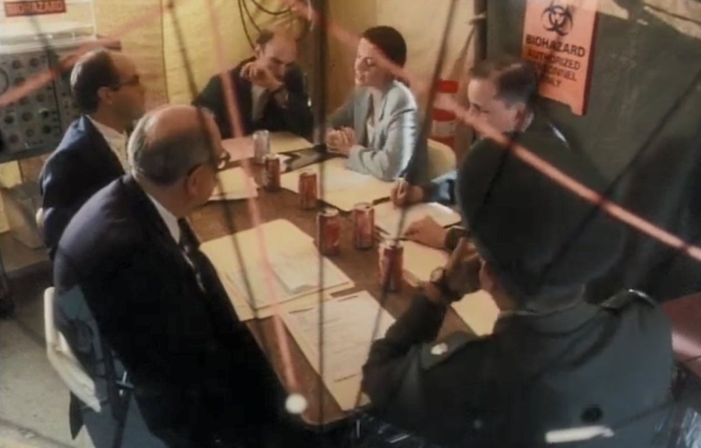 Back in Washington, D.C., the Defense Advanced Research Projects Agency, which, at the very beginning of the movie, we learned about Dr. Tiptree, is rather concerned about what Eunice is up to. They learn about the dead driver who got mauled and killed. What they take particular interest in are the results of some saliva found in his wound. That saliva is something that traces back to Eunice, which is supposed to be working on chickens, not something that can gut people.