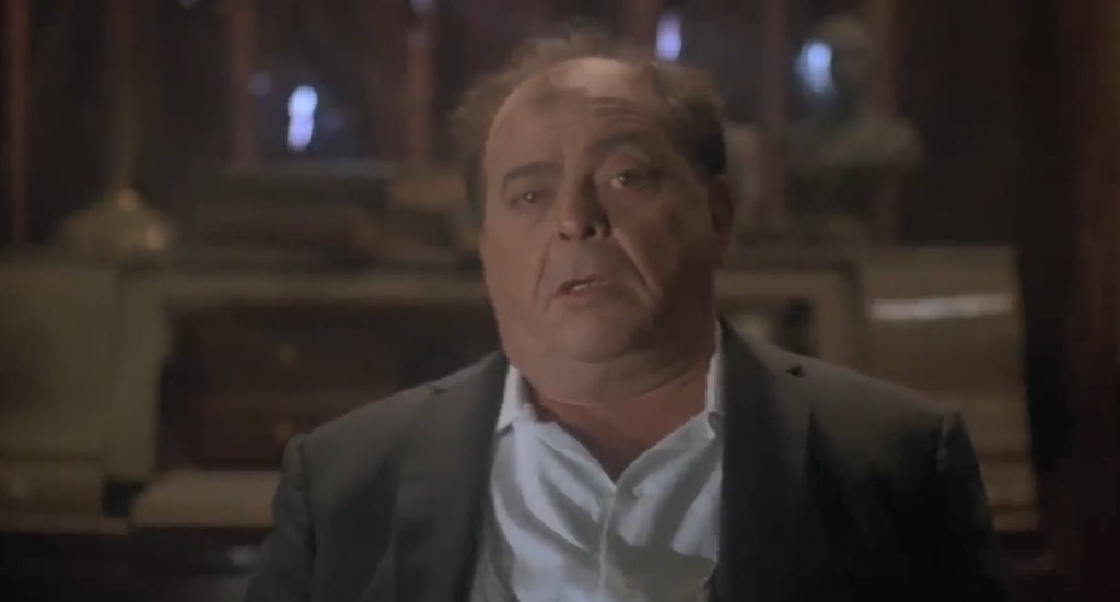 Syndey Lassick responds with a marvelous line and delivery when he stands up. He says, “That assuredly is the most asinine statement to ever escape that delicate mouth of yours, dear.” That’s top-tier, chef’s kiss dialogue.