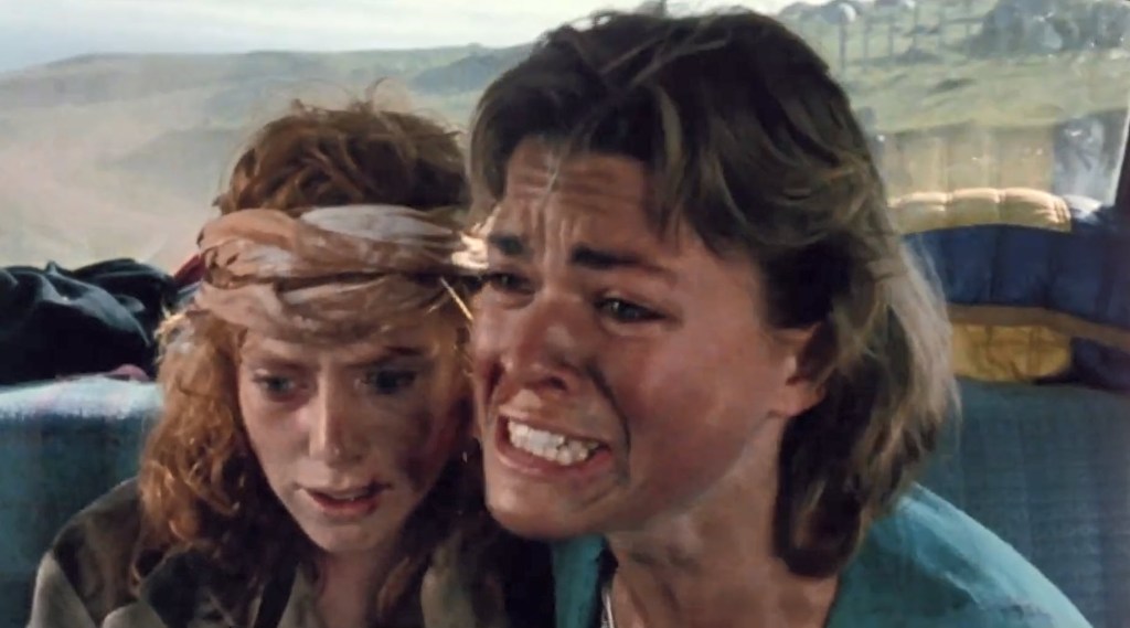 I like this scene of Michael and his friends driving through the countryside of this island. It looks serene, but it also feels… off. It’s sunny, but the soundtrack and the general vibe are uncomfortable. It’s more uncomfortable than these two weirdo creeps seemingly hunting them down on the roadways. I think it’s just how empty everything is in this countryside location. There are no farmers. No livestock. It’s just fields and grass.