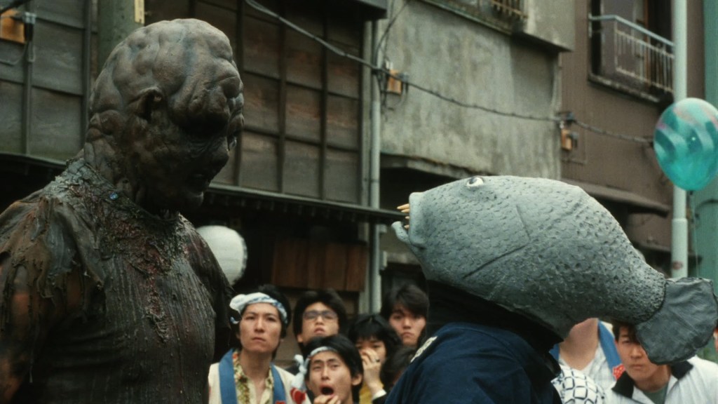 Oh yeah… now this is what I sign up for when it comes to bizarre Japanese shit. And that’s with or without Lloyd Kaufman running around the streets filming his batshit insane stuff. We have a Toxic Avenger and a fish-head villain doing battle on the streets of Tokyo. Who could ask for anything more?