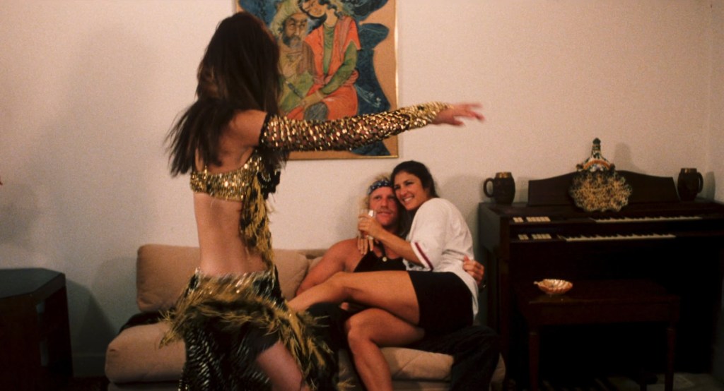 What’s going on at Black Pepper’s place is nothing short of What the Fuck? He’s got one girl on his lap serving him liquor. He’s got a second girl doing a belly dance for the two of them. Because John S. Rad paid for this bellydancer, goddammit, we’re gonna see her perform. Seriously, we see the WHOLE performance through an entire song. When it finally ends, Black Pepper takes his girl to the bedroom and kisses her legs and belly. Lots of leg and belly action in this movie.