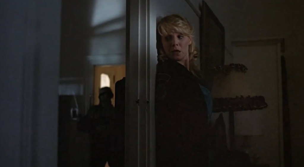 But, then again… Why go to his place after all? If we only see him twice in the movie, and we think there might be a prowler coming from a whole other area… Why would you need to search his place? Because he happened to be outside and grabbed Pam when she ran by after being chased by someone she doesn’t think has anything to do with old man Chatham? That doesn’t make a lick of sense, does it? He wasn’t even at home either time she and Mark checked out his place! So all of that stuff was a nothing burger.