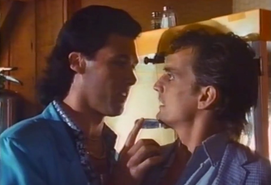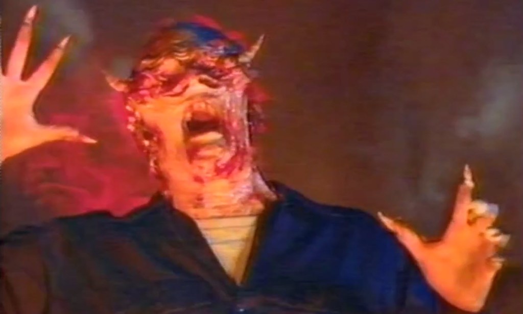 The biggest thing that hurts this movie is that it looks cheap, and it’s clunky. Now, it’s clear that Daniel Roebuck is chewing scenery. He understands the assignment, and he’s got a lot of talent. He also has very good chemistry with Vivian Schilling as they play a married couple. You actually believe that they are a married couple. Clearly, he’s going to appear in a ton of shit in his career. The issue with the cheapness of how the movie looks comes from what’s surely a very small budget. I don’t think it’s shot on video. It’s hard to tell because, if you didn’t notice, my screencaps are very low definition because this movie has only ever really been released on VHS. Even if it was made on a higher-grade videotape, the movie still looks very cheap, and the shots are typically generic and static.