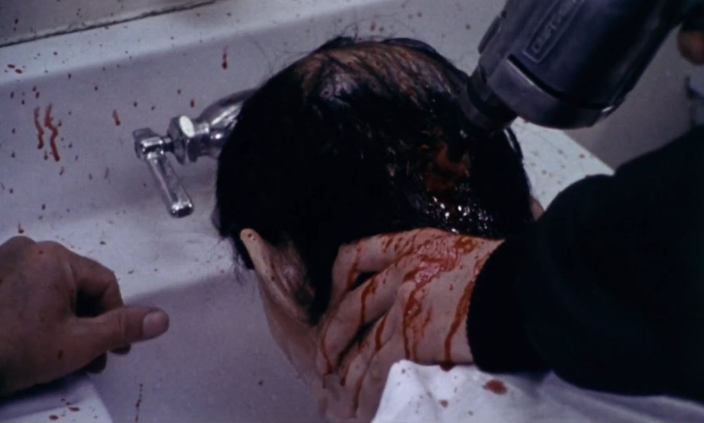 This is the part of the movie when we get Chekhov’s Gun, or, more accurately, Chekhov’s Drill. Remember when I said that Bill the caretaker came along and complained that someone had taken his favorite drill? Well, he gets the drill back. Oh, wait. I was supposed to say he gets the drill in the back of his head.