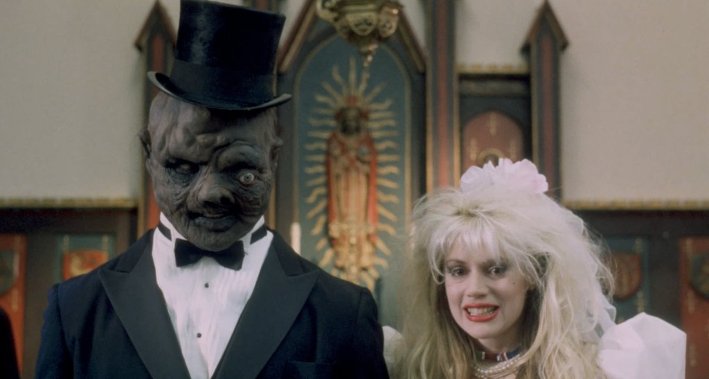 But this is actually the return of the Toxic Avenger. He declares that he’s back, but in voice over, he says that this return was after he had forsaken his oath to keep Tromaville and its people safe and happy. He had become… a bad dude. You see, he had lots of things to be excited about. Tromaville was safe. The people seemed to be in high spirits. Apocalypse, Inc. had left them alone. His mother was proud of him, and he was engaged to marry Claire.