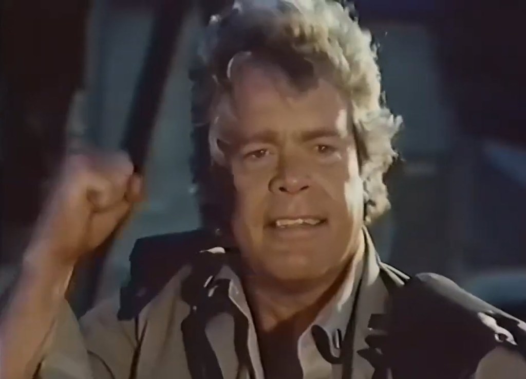 Now, I’m pretty sure I’ve seen this movie on some Roku channel somewhere back in the heyday of my Roku consumption. I’m pretty sure it played on Beta Max TV. I don’t really remember that it starred Darren McGavin and Doug McClure (you may remember him from such movies as The Death of Me Yet, Satan’s Triangle, and Humanoids from the Deep), but I definitely remember a post-apocalyptic world and a Firebird, so… I guess that’s this movie?