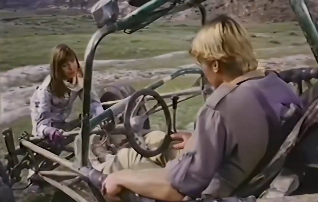 After a brief meet-cute between Cam and Jill, there’s a long sequence of Red and Indy racing across the California desert. Jill teaches Cam how to drive her buggy. Jill has a tough demeanor because she’s a bit of a grease monkey, and as she teaches him how to drive that buggy, it becomes a little bit of a double, triple, and quadruple entendre between the two youngsters. On the surface, and if everything were equal, I have no issues with these segments, per se.