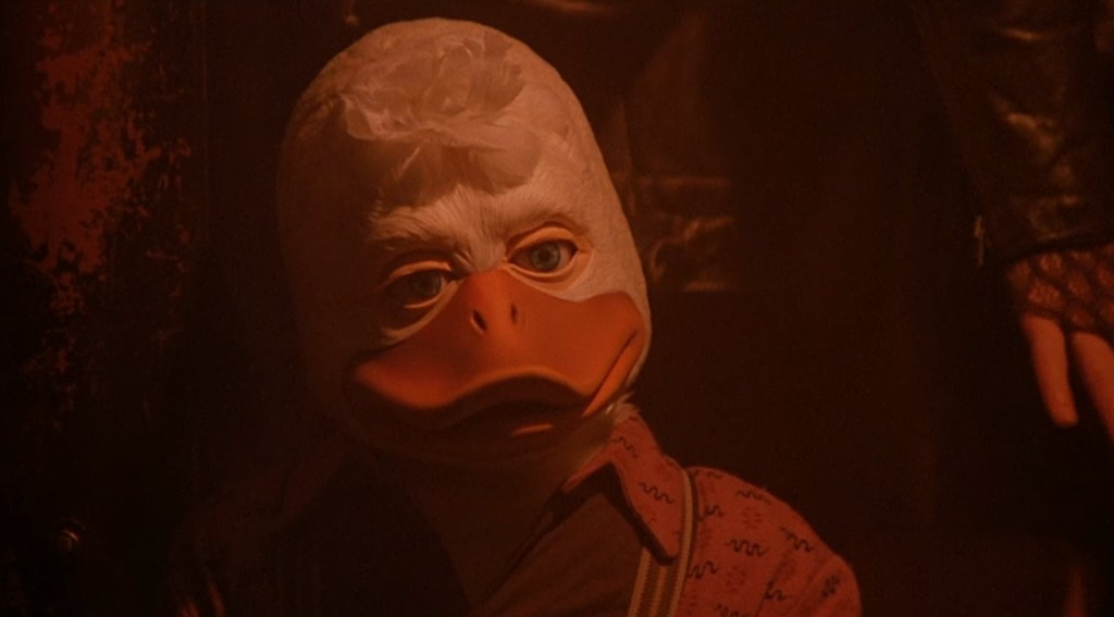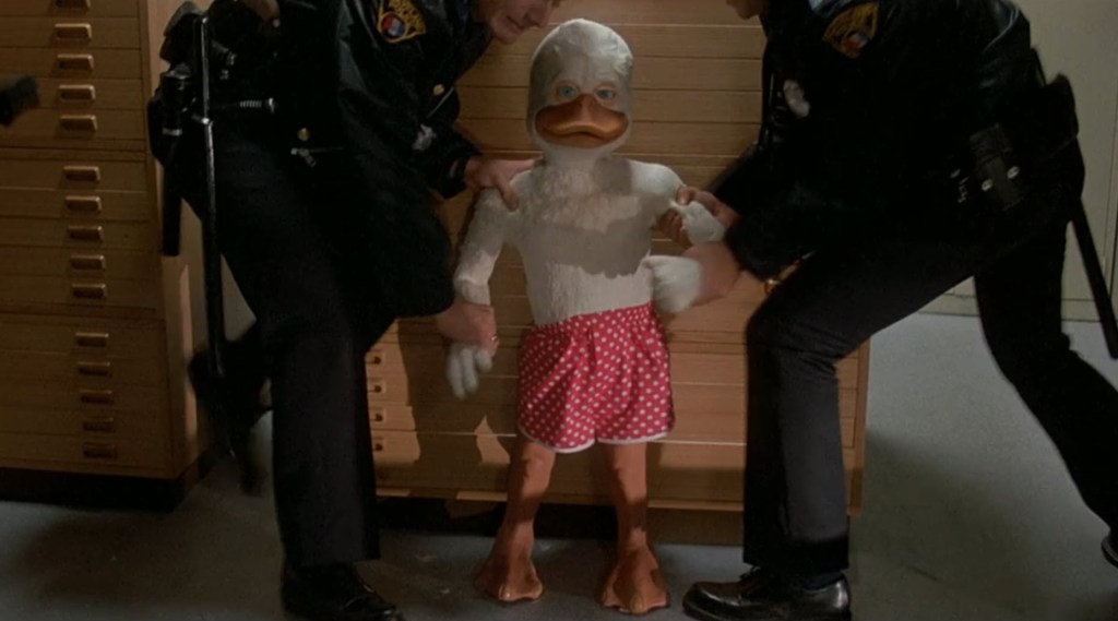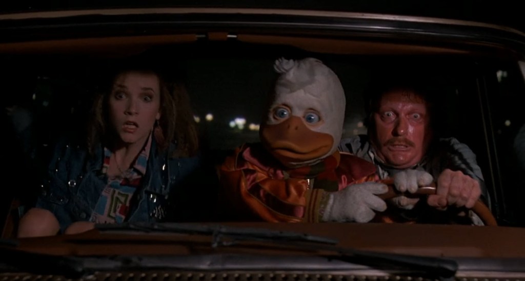 Another side to this is George Lucas. Naturally, he is a special effects guy. The movie started sliding further away from a cohesive adaptation to focus on the advanced practical effects that would bring Howard to life. I guess that makes sense that a movie about an alien duck needs to make sure that the duck looks like he belongs in the real world. Between Jordan Prentice in a suit and several puppeteers, the character kind of works for 1986 standards. At least, as I see it, I think it does work for the era in which the movie was made. Originally, Robin Williams was cast to voice Howard, but he quit after a week, feeling caged in by the limitations of the script, and felt unable to do what he would assume he was hired to do – be his version of the character. Chip Zien, an actor known for a bit of a nasally voice, was chosen. Both actors were kind of set up to fail. They weren’t brought in until post-production, which means they had to match what was filmed, and that hindered performances because they had to match what was filmed instead of the other way around, and they had very little room to improvise a line.