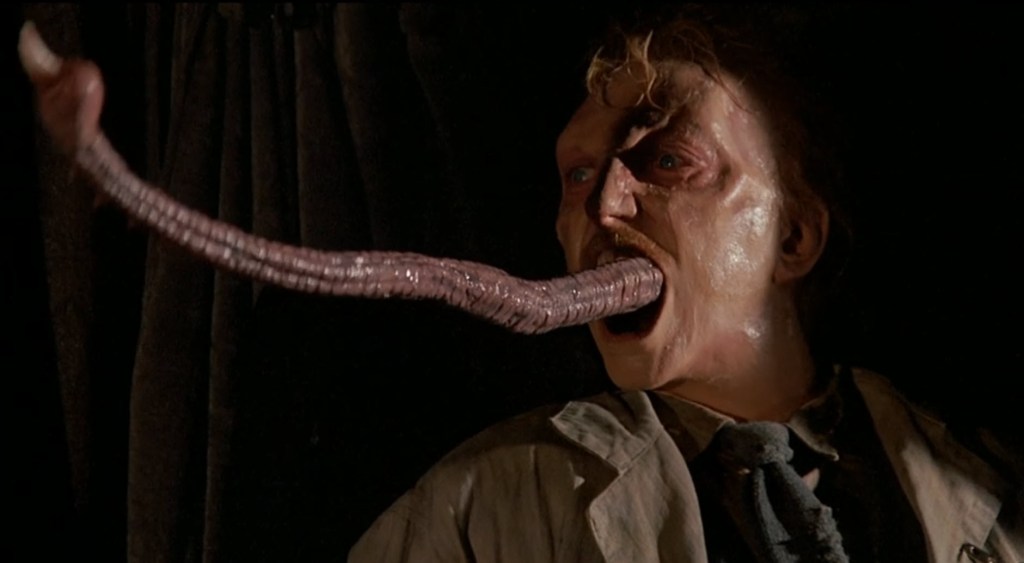 As Jenning continues to get grosser and grosser looking, his powers grow and grow. He uses those powers of telekinesis, Sith-style lightning, and balls of fire to lay waste to this diner. He then catches Howard and Beverly trying to escape and uses his telekinesis to get the code key for the spectroscope to call down the other Dark Overlords. Jenning leaves Howard in the diner while he takes Beverly back to the lab so one of his kind can inhabit her. If you know what I mean…