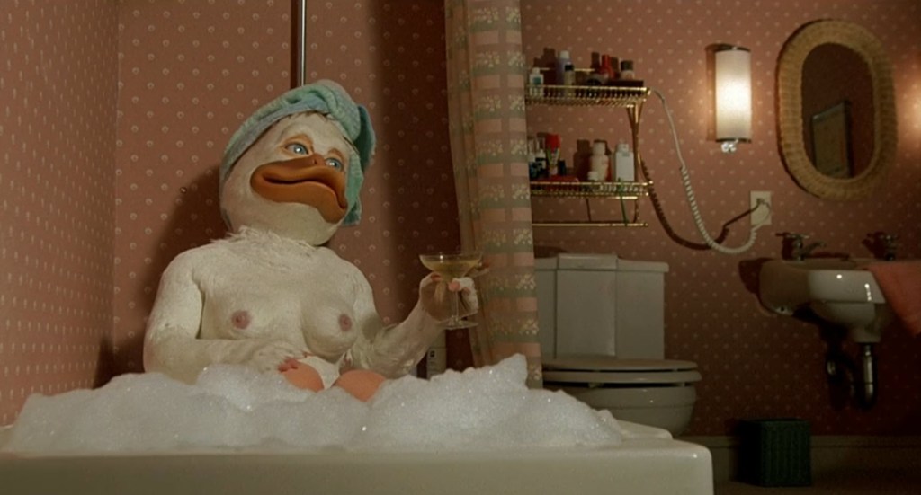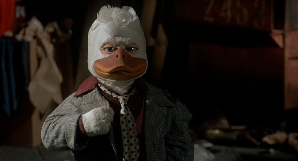 Everything you’ve ever heard about Howard the Duck is true. There is no adequate explanation of how this movie could honestly be thought of as a good idea to produce. This is definitely one of those “blank check” types of movies. George Lucas has the biggest hits on the planet between the Star Wars Trilogy and the Indiana Jones duology, and what does that get ya? Howard the fucking Duck.