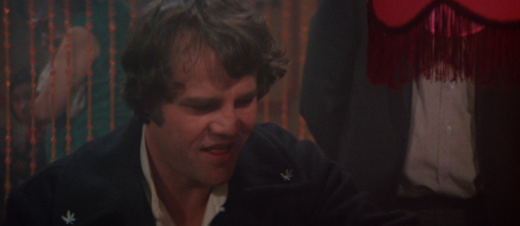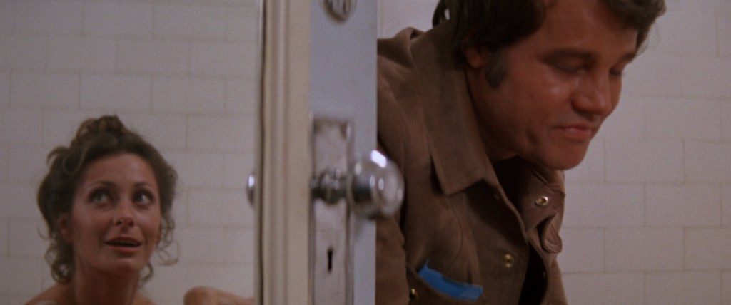 Hell yeah… We’re introduced to Joe Don Baker. I’d like to say he’s playing a man named Dan, but he’s really just playing himself. He’s got a bit of an unassuming tough guy swagger. A guy tries to take something out of his pocket, but he yells at the guy to put it back. In the course of yelling at the guy, he makes an appeal to the heavens to say that he will remove the guy’s face if he doesn’t put whatever he took back into his pocket. Early Joe Don Baker is something very similar to Elvis Presley. He’s got that same kind of chubby face that Elvis had when he was younger. That’s just an observation.