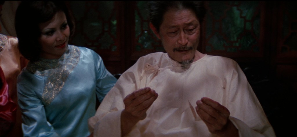 The movie kicks right off with the setup of what these legendary needles are. Basically, they are seven acupunctural needles that, when used correctly and in the correct order, provide, yup, sexual vigor and a sort of fountain of youth restorative properties. If they are used incorrectly, it is instant death. People have been hunting this treasure for a very long time. And that’s the whole setup, the movie doesn’t linger on this and instantly gets to business and gets us right into the action, with a pretty rad theme score that’s like half James Bond incidental music, a little Asian sound, and a lot of blaxploitation groove. Which is definitely a calling card of this film’s composer, Lalo Schifrin. Schifrin is most notably the creator of the Mission: Impossible theme and the composer for Enter the Dragon.