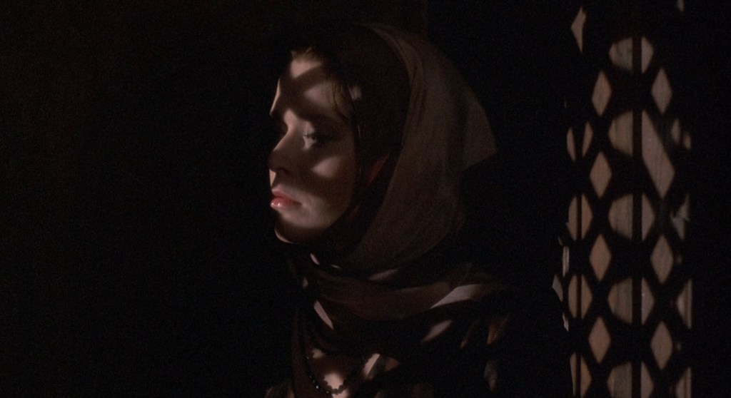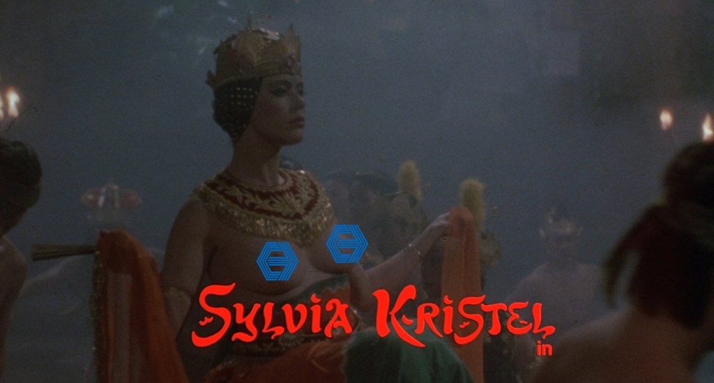 This is a curious movie. In one regard, it’s an exceptionally competent film in the technical side of things. It’s got a fairly big production value to it. It looks good, again, thanks to the Kino Lorber restoration of the Blu-ray. Sylvia Kristel is a very appealing and attractive leading lady. She commands attention when she’s on screen. And that’s not because she might go topless at the drop of a hat. You can see she took the material seriously. Director Curtis Harrington said that about her. He said that she was this massive and obvious sex symbol, but she never just rested on that. He seemed to appreciate the effort she put into playing her role.