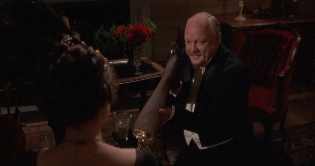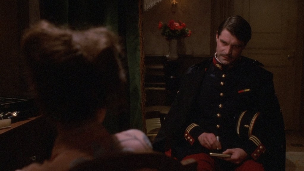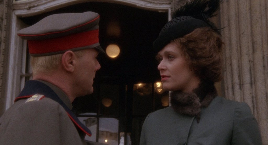 And I think that’s the biggest complaint people have over this movie. Kristel, though good as a character and a screen presence, is given this material that plays Mata Hari as this doe-eyed, nearly agent-less woman who just fell in love and wanted to help the man she was in love with. It seems to rob this historical figure of what was more likely to be true about her. I think she knew what she was doing and was more than aware that a war was going on, and she could profit from it. I think my biggest complaint here is that Mata Hari is not exactly set up that well to be seen as this agent in this messy war. She ping pongs back and forth between Ladoux and Von Bayerling. She seems largely in love with Von Bayerling because the most interesting sex scenes are between those two characters. But what does she actually do in this war? I guess she stops the explosion that would kill a bunch of dignitaries, but beyond that? She doesn’t seem to really reveal any important secrets.